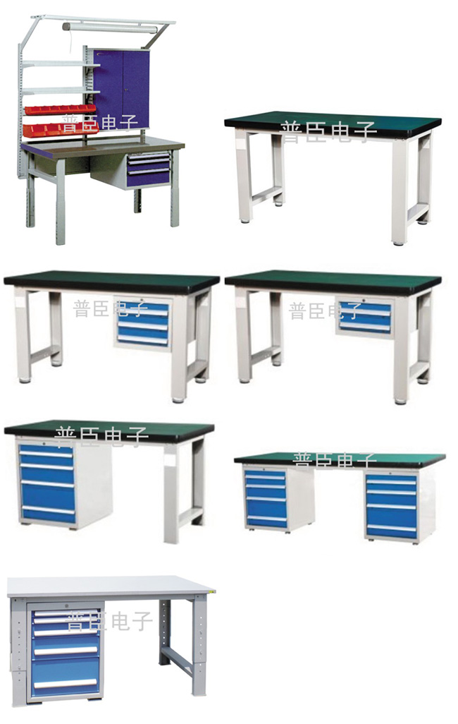 承重型工作台台面厚度为50mm,有四种台面可选用:不锈钢台面;钢制台面;耐磨高分子台面/PVC包边;耐磨高分子台面/不锈钢包边